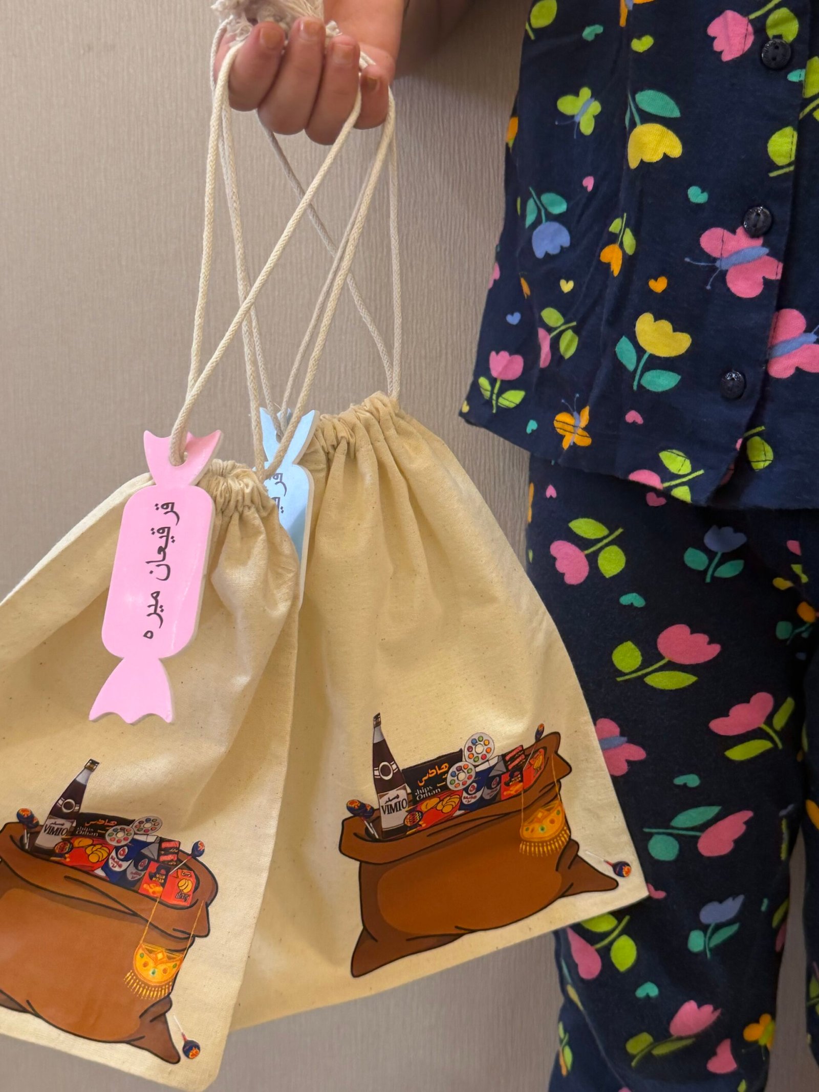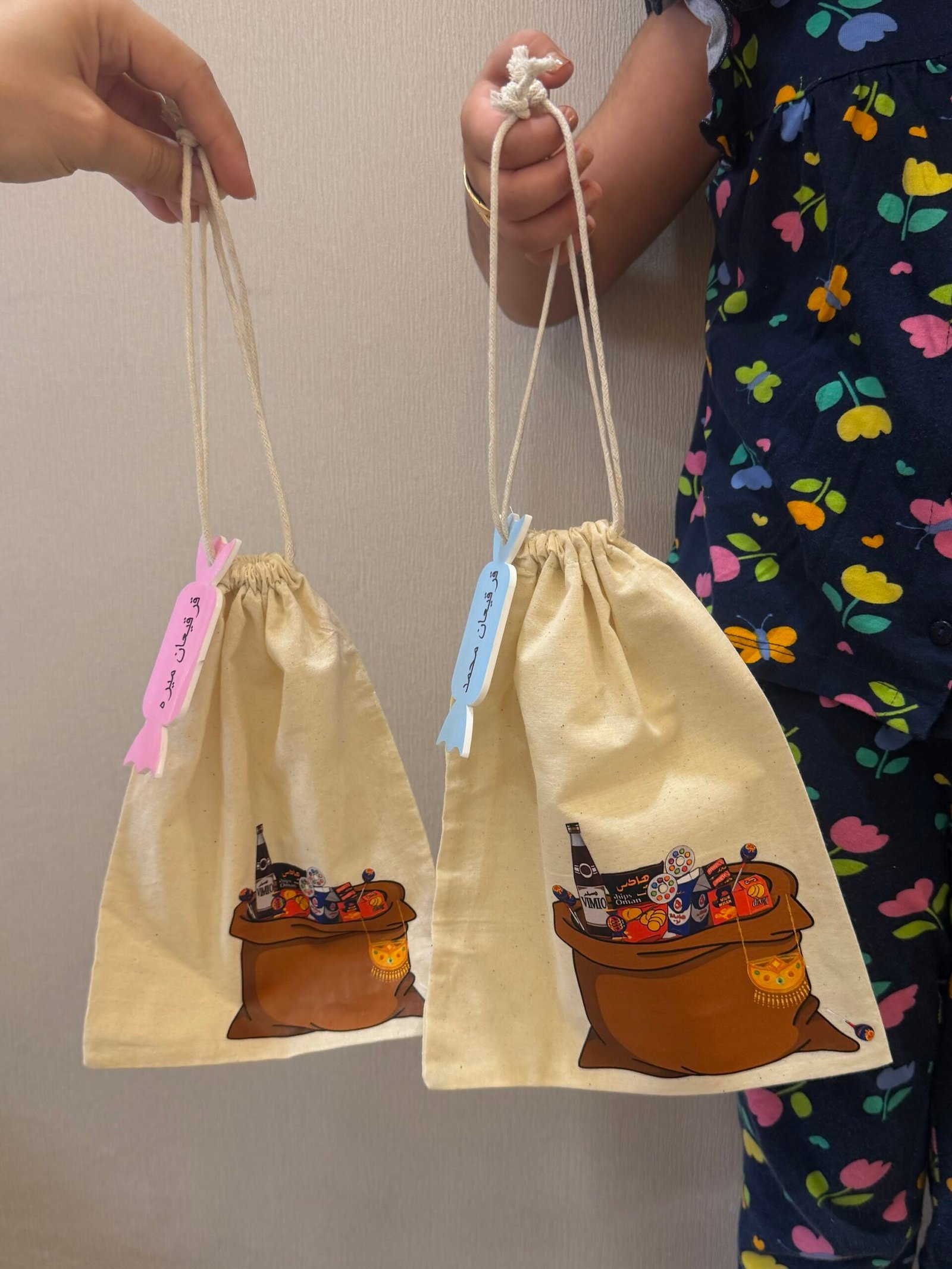 مقاس الكيس 17x23cm .. الاسم اكريلك … الحبه ب 18 درهم … اقل عدد للطلب 10 حبات